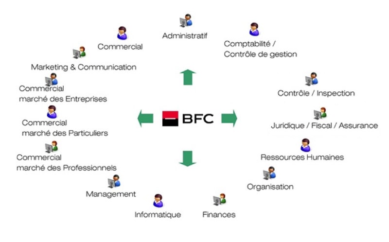 - La BFC favorise en outre l’employabilité de ses collaborateurs grâce à la mobilité interne mais aussi au programme de formation déployé chaque année permettant ainsi de monter en compétence (formations qualifiantes et diplômantes, elearning ...).